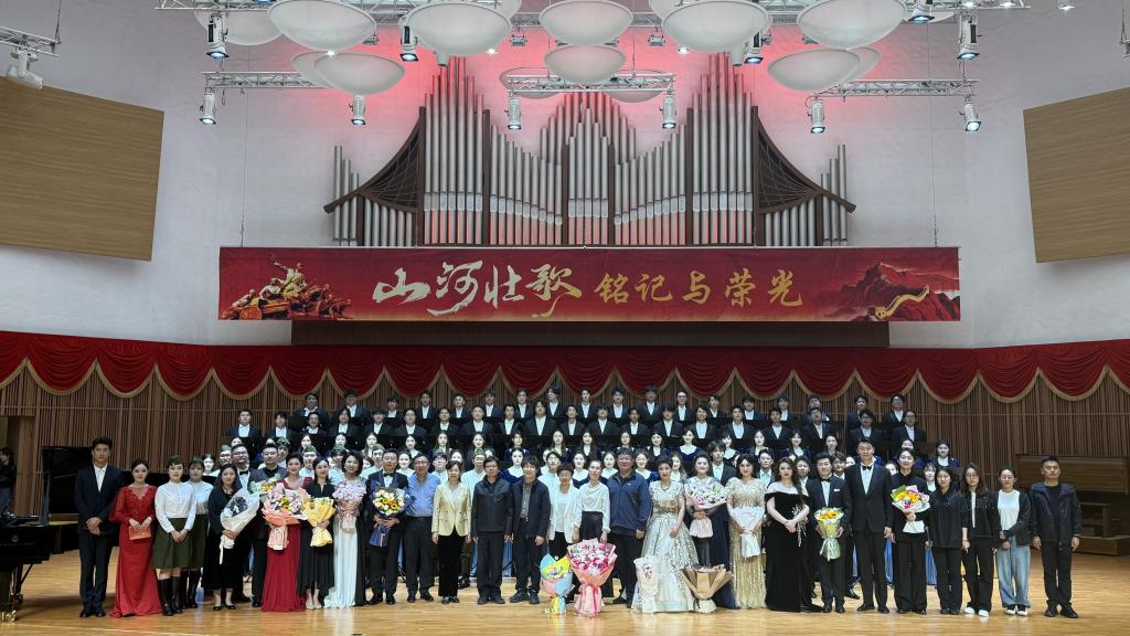 为庆祝新中国成立76周年,喜迎国庆,9月25日晚,“山河壮歌:铭记与荣光”——纪念中国人民抗日战争暨世界反法西斯战争胜利80周年专场音乐会在音乐厅隆重举行。本次音乐会由学院宣传统战部(党委教师工作部)、共青团哈尔滨音乐学院委员会联合主办,声乐歌剧系党总支承办,以音乐为载体弘扬伟大抗战精神,为观众呈现了一场震撼心灵的艺术盛宴。