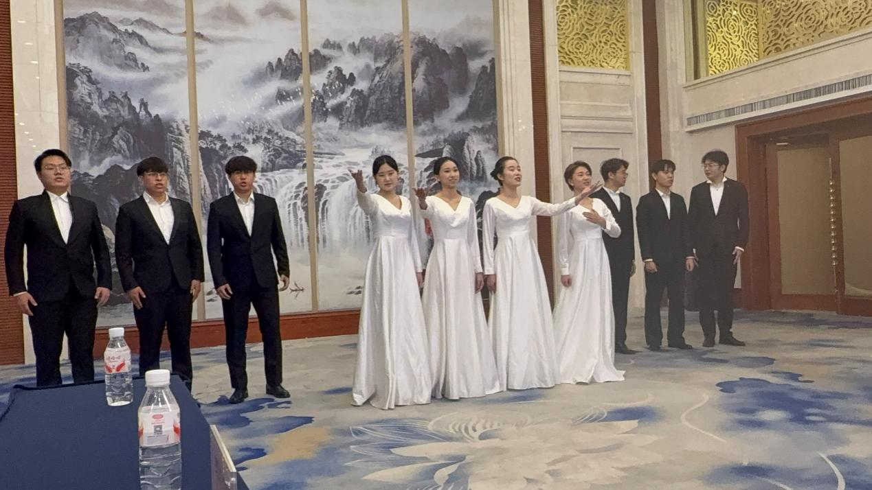 会议期间,由学院声乐歌剧系教师鄂振明指导、10名声乐专业学生共同演唱的经典歌曲《友谊地久天长》响彻整个大厅,表达了中俄两国人民对过去美好岁月和珍贵友谊的珍视之情。优美的旋律,悠扬的歌声获得了座谈会中俄代表经久不息的掌声。