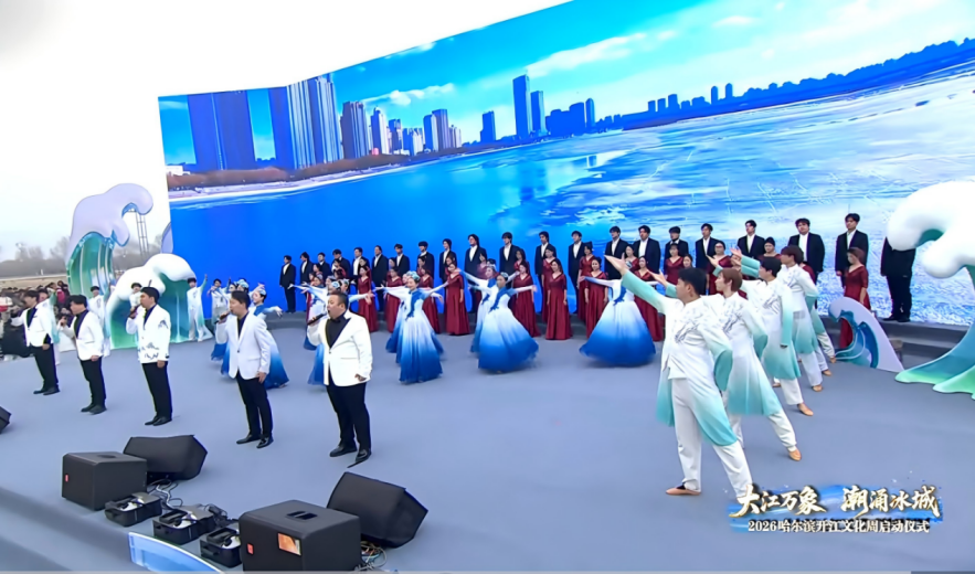 应哈尔滨市文旅局邀请,4月3日,哈尔滨音乐学院合唱团亮相“大江万象 潮涌冰城”2026哈尔滨开江文化周活动,以专业演唱助力冰城文旅盛事,充分展现学院艺术风采与服务地方文化发展的责任担当。