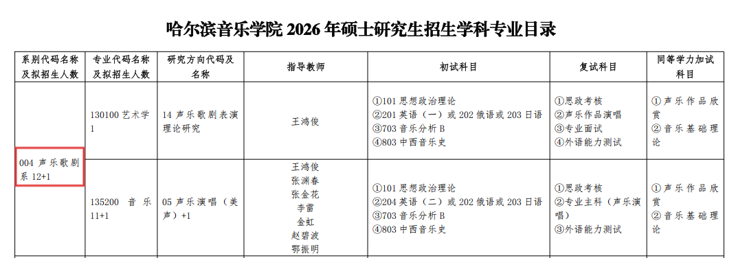系别代码名称:004声乐歌剧系